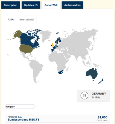 Die Spende des Fatigatio e.V. über 2.000 $ im Mai 2024 geht direkt an das Berkeley Public Health Center, Kalifornien. Das Center finanziere Tullers akademische Position als Senior Fellow im Public Health and Journalism Center for Global Public Health für die gesamte zweite Hälfte diesen Jahres 2024, heißt es auf der Berkeley Crowdfunding-Seite.