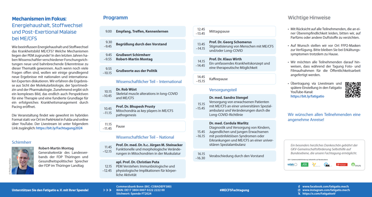 > mehr Info-Fachtagung des Fatigatio e.V. fand am 14. September 2024 unter der Schirmherrschaft von Robert-Martin Montag (MdL) im ParkHotel Fulda sowie online via Live-Stream auf YouTube statt.